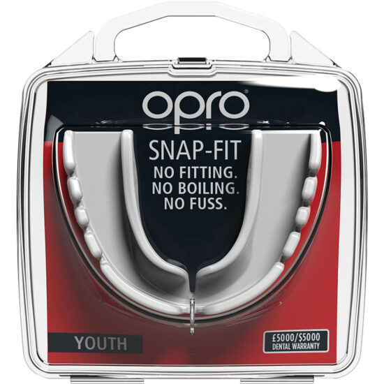 De Adidas OPRO self-fit – junior – wit is een bitje uit de collectie van Adidas in samenwerking met Opro. Opro is al jaren een bekende leverancier van mondbescherming in diverse sporten. Dit bitje is gemaakt van gel-achtig materiaal en vormt zich feilloos naar het gebit. Deze Snap-Fit is ontzettend makkelijk in gebruik! Je hoeft het bitje namelijk niet eerst in kokend water te leggen of te laten wennen aan jouw mond. Ook perfect als reserve of back-up bitje dus!