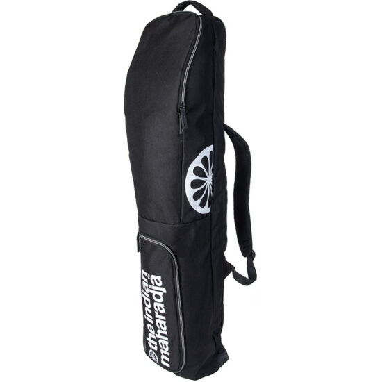 De zwarte The Indian Maharadja Stick bag met witte opdruk en wit accent in de rits biedt ruimte voor 3 tot 4 sticks. Daarnaast is er nog genoeg opberg-mogelijkheid voor schoenen, kleding, bitjes en ballen in het zijvak en de twee compartimenten. De stevige tussenwand maakt dat vochtige kleding zorgeloos ingepakt kan worden naast droge spullen. Alle vakken zijn afsluitbaar met een dubbele rits met puller. Als extraatje binnenin het zijvak een handige afneembare sleutelhanger en aan beide zijkanten vakken voor bidons. De polyester stick bag kan op de rug worden gedragen met behulp van de verstelbare schouderbanden. Zowel aan de zijkant als aan de bovenkant een extra handvat om de tas aan op te tillen. De onderkant van de tas is verstevigd met een anti-slip buitenvoering.