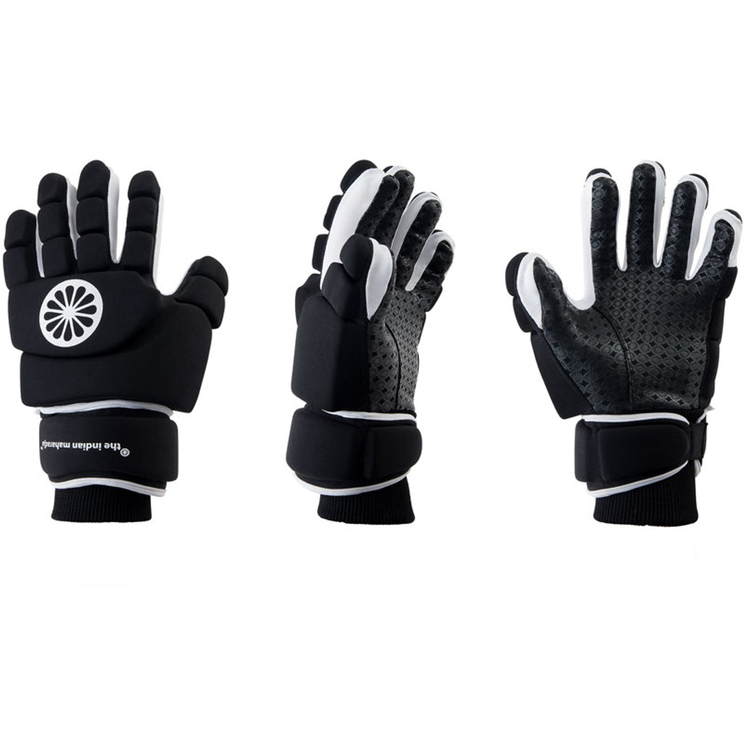 The Indian Maharadja PRO full finger handschoen voor de professionele speler is geheel vernieuwd. Het extra dikke speciaal ontwikkelde protectie-foam met hoge dichtheid geeft maximale handbescherming en flexibiliteit. De lycra stof aan de buitenzijde zorgt voor een perfecte pasvorm en de grip met siliconen textuur aan de binnenzijde voor optimale grip en controle. De handschoen sluit met een comfortabele elastische polsband. De PRO full finger glove is een hoogwaardige indoor hockeyhandschoen.